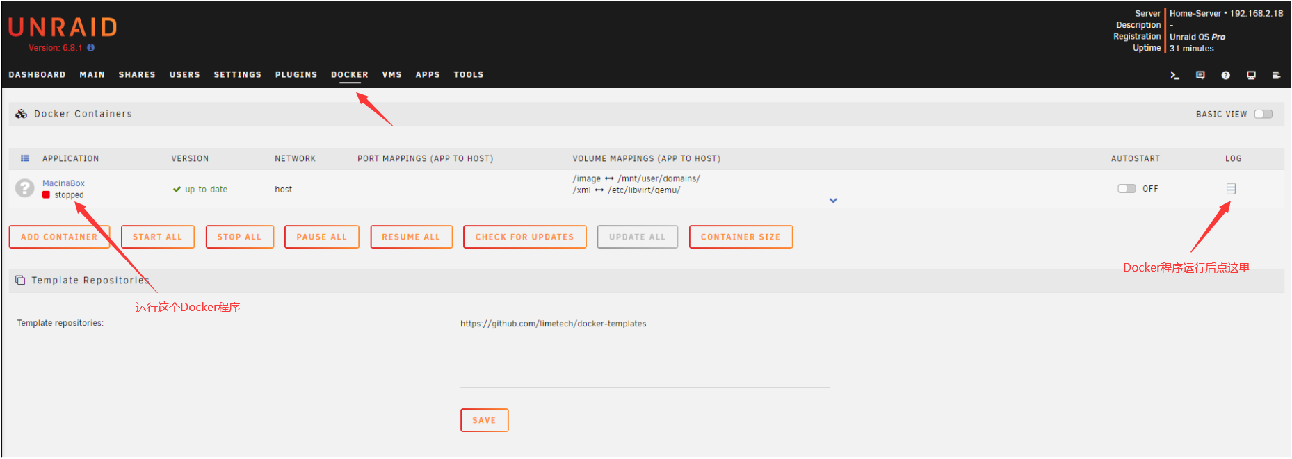 这里本应该还有一张图片的,但因为本人安装 unRAID 的机器出了点问题,所以没有截图。大体的内容就跟安装其他 Docker 应用时的页面一样。
